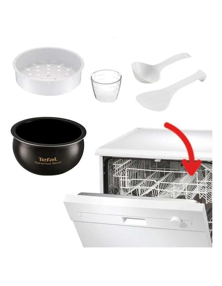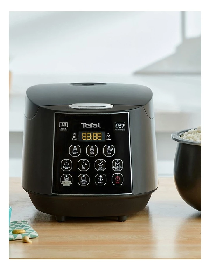 Tefal Easy Rice & Slow Cooker Plus makes everyday meals effortless, with a spherical rice pot for flawless results with maximum flavor. This easy-to-use rice & slow cooker comes equipped with enhanced features and smart design in one convenient kitchen appliance: Fuzzy Logic artificial intelligence provides exceptional precision, offering automatic adjustment of cooking time and temperature for optimum results. Elevencooking programs put unlimited possibilities within reach, with enough choices to please the entire family, from different varieties of rice to slow-cooked recipes. The high-quality 4-layer inner pot includes a non-stick coating to keep food from sticking and to make clean-up effortless, while the 1.8 L / 10-cup capacity is ideal for everyday use or when entertaining guests. With a range of smart features rounding off the package, Tefal Easy Rice & Slow Cooker Plus offers perfect taste every day.