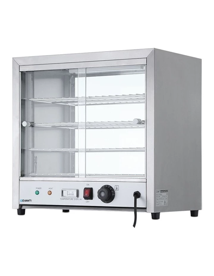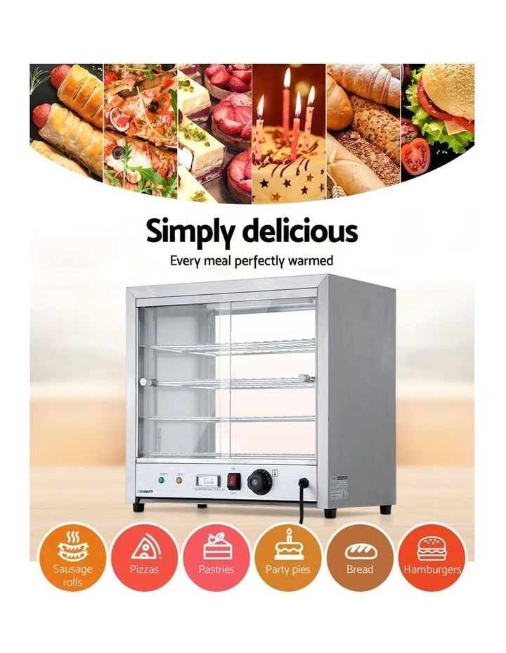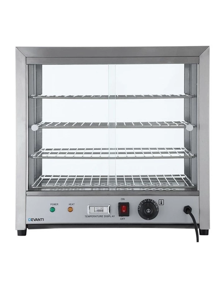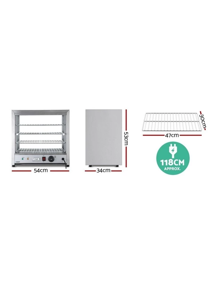 Display your tasty food in the best way possible with the Devanti Commercial Food Warmer. The all-tempered-glass 4-tier showcase is strong and durable and allows for easy viewing on all four sides. The S-shaped heating elements help to keep the food warm at the desired temperature. Thanks to the adjustable thermostat that can set temperature to be between 300C and 1100C.