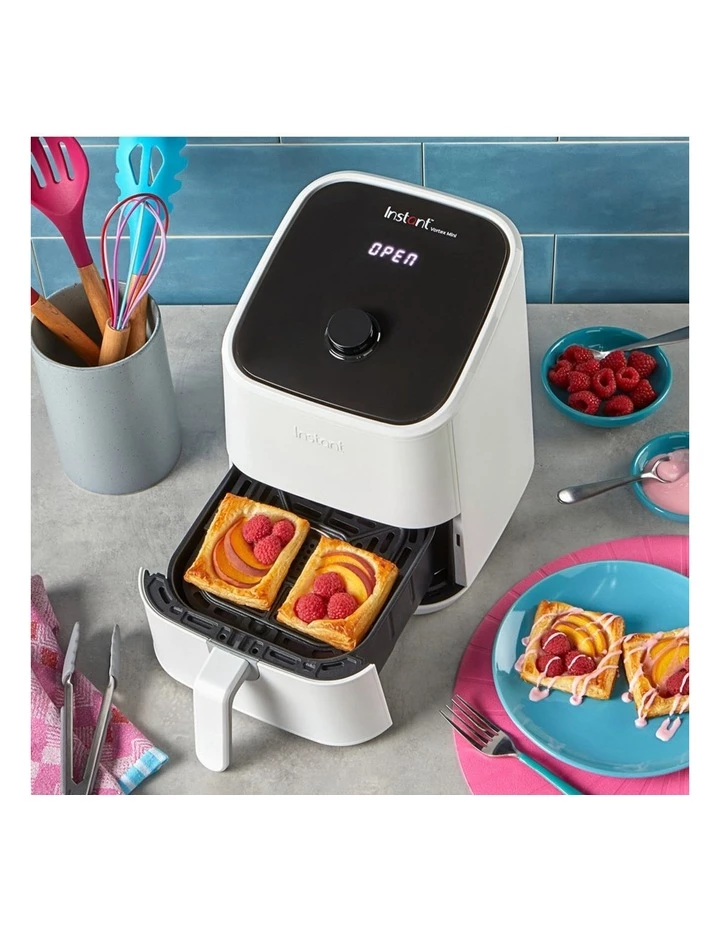 Instant Vortex Mini Air Fryer 2L, 4-in-1 Mini Air Fryer Smart Cooking Programs 4 pre-set Smart Cooking Programs that can be customised to your preference. Crispy Air Fry perfection with chips, nuggets and more EvenCrisp Technology For crisp, tender results every time. Healthy and Delicious Use 95% less oil for all your favourite fried foods. Sacrifice the calories, not the experience! Countertop Friendly.