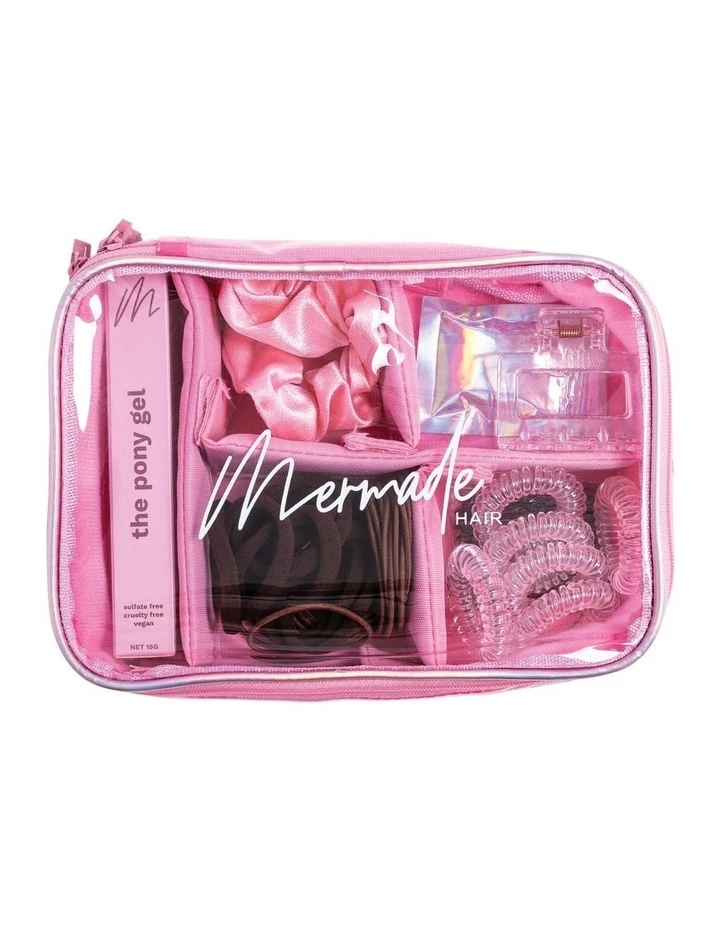 Never settle for a dull up-do again with The Pony Kit in Brown! This super cute beauty case has all your hair basics suited to your mane shade in one place. With a variety of hair ties, bobby pins a-plenty, an easy-to-pack comb and our special Pony Gel formula, you have everything you need for the perfect up-do. Plus, you can move or remove the dividers to fit your accessories or makeup.