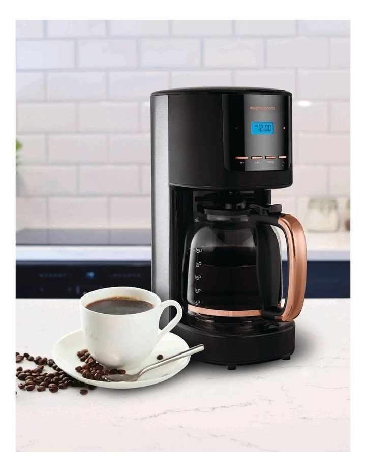 - Brushed stainless steel with matte black finish and Rose Gold trim