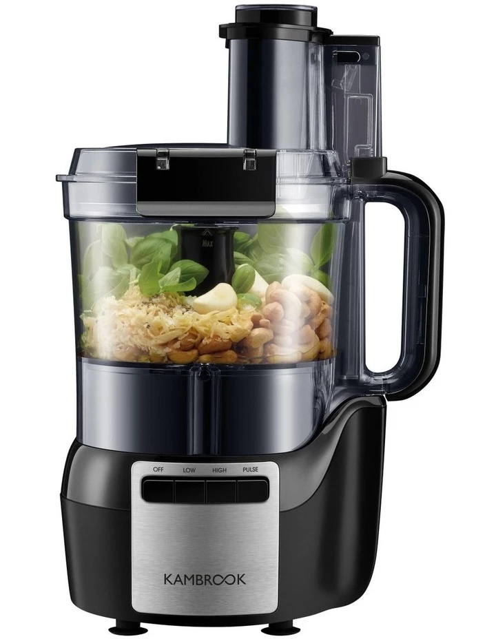 The Kambrook Culinary Snap & Seal food processor allows for precise control with 2 speeds plus pulse. The simple Snap & Seal lid prevents leaks so no difficult twist & lock action required.