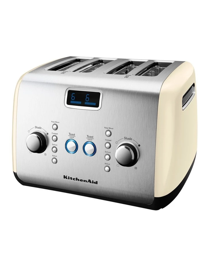 Preparing deliciously golden toast and crumpets is easier than ever with the KitchenAid Artisan Toaster. The motorised lift button gently lowers and raises your bread, and the blue LCD display keeps track of your personal settings, so you can enjoy your toast just the way you like it, every morning.