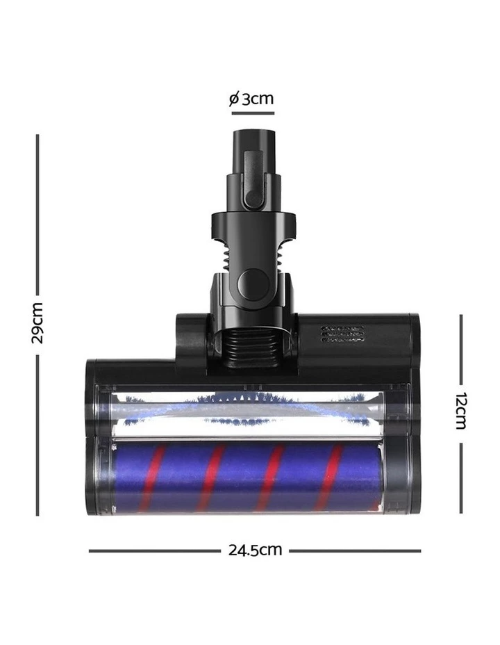 Designed as an optional cleaning head for use with Devanti 150W cordless vacuum cleaner, the motorized dual roller cleaner head makes cleaning even more effortless and hassle-free. It has an in-built motor that powers up the cleaning with the help of stiffer nylon bristles to reach deep-seated dirt in carpets and crevices and a soft roller to ensure tender loving cleaning on pristine surfaces.