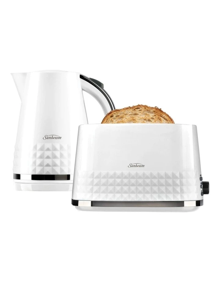 Stylish Diamond textured 2 slice toaster with a matching kettle.