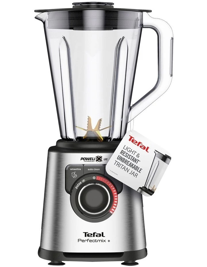 From fresh, healthy juices to soups, spreads and desserts, Tefal PerfectMix+ high-speed blender with Tritan jar does it all, ensuring perfect results time after time. Its exclusive blades with Powelix Life technology combine superior robustness, cutting performance and vortex pull for up to 30% faster performance!* With a powerful 1200 W motor and three pre-set programs (Smoothie, Ice Crush and Auto Clean), even the hardest ingredients are tackled with ease, for incredibly smooth results and an even texture. This high performance is made to last, thanks to a hard titanium coating on the blades. Rounding it all off is an ultra-resistant Tritan jar, with a 1.5 L capacity that is perfect for the whole family. With PerfectMix+, you’ll never stop blending!