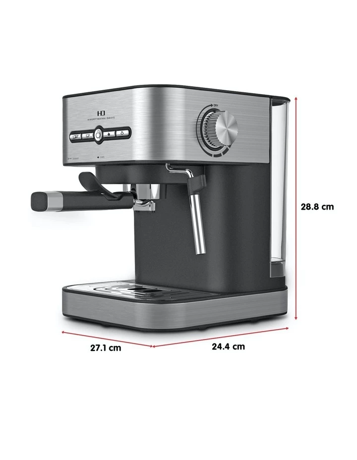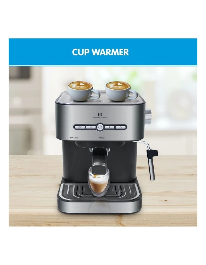 Wake up to delicious coffee every morning with the Hauffmann Davis 1.5L Espresso Machine. Featuring a milk frother, 15 bar Italian ULKA pump and a large detachable water tank, this automatic espresso machine is a coffee connoisseur’s must-have.