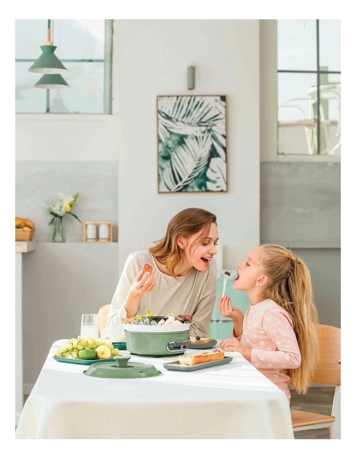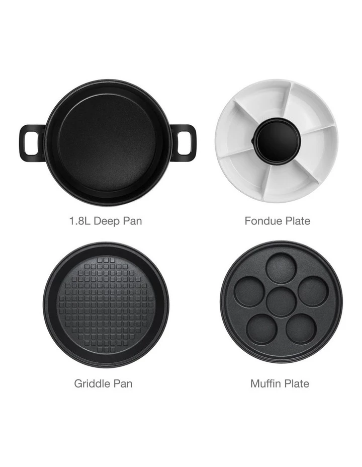 - Features: Compact Round Design | 4 cooking accessories | Unique Fondue ’40 dregree mode’ | Easy to Clean | Non-Stick Surface | 3 Heat settings