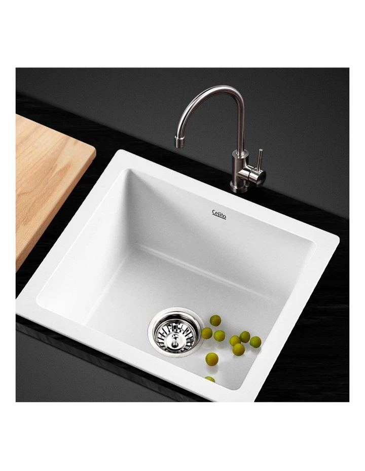Your beautiful home certainly deserves the best of quality fittings and appliances. More so for your kitchen where meals should be prepared with safe, hygienic and food-grade equipment. That is why our Cefito Stone Sink is perfectly suited for your fine kitchen. Made of premium-quality black granite stone composite (80% granite), our 9mm thick stone sink with a silky textured surface not only look fabulous, but is also extremely durable and longlasting. Every bit of the sink is non-toxic, lead-free and highly resistant to heat, scratches, stains and dirt. Oil will not adhere to it and neither does it fade over consistent or heavy-duty use. The quality finish along with the R15 rounded corners mean the stone sink is completely easy to clean and maintain. Suitable for drop-in, flush or under mount installation, our stone sink also includes a 304 stainless steel corrosion-resistant waste strainer. With its contemporary finish, our stone sink is a definite stand-out in your esteemed kitchen.