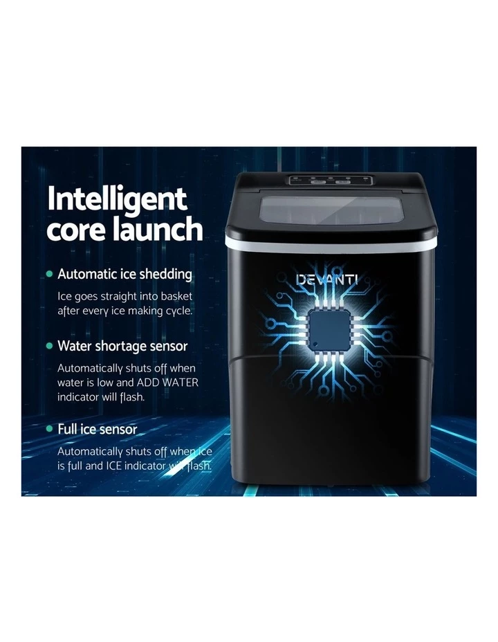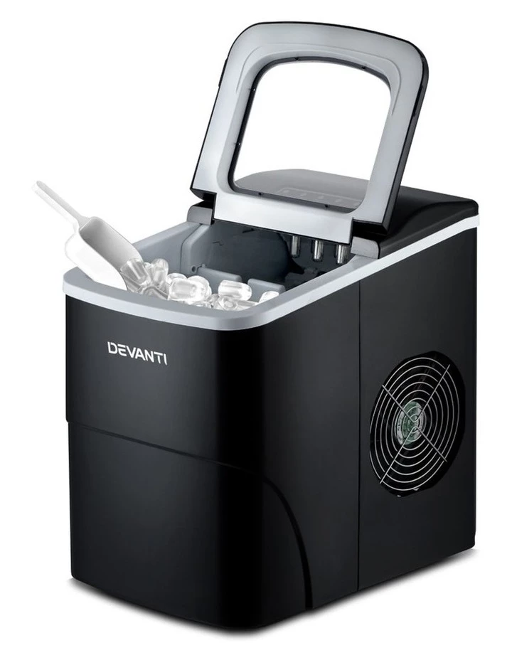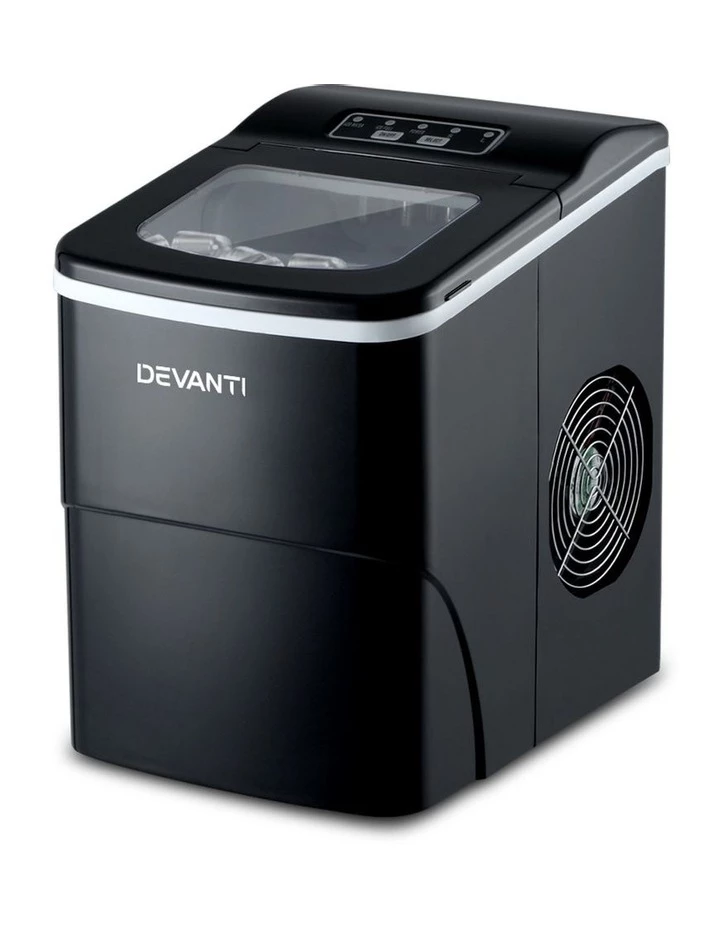 Need ice cubes on demand fast and without the hassle of driving to the nearest servo or supermarket to get some? Well your wish has just come true with the Devanti Ice Cube Maker. Capable of making 9 ice cubes in every 6 minutes depending on the water and ambient temperatures, the portable ice cube maker can also do two different sizes of its crystalline bullet-shaped ice cubes. That works out to about 12kg on demand over a 24-hr period. Just select your size option on the LED control panel and press start. You can easily monitor the water level or when the ice cube container is full and there is an automatic indication when the water level is low. Other great features include a large heat dissipation fan for excellent cooling, convenient water drainage plug and non-slip feet for a stable operation. Not least, the ensemble works ever so quietly and complies with current Australian standards.