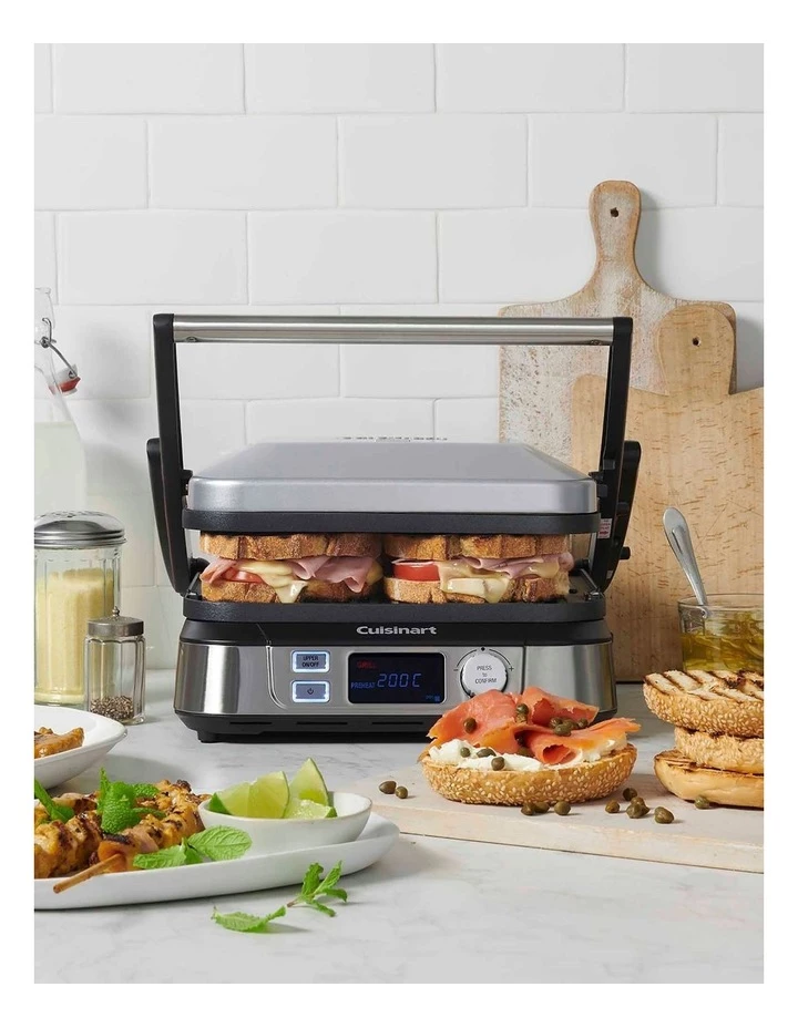 - 2 x removable dishwasher safe reversible plates – Combination Open Grill & Griddle, Contact Grill & Griddle, Sandwich Press
