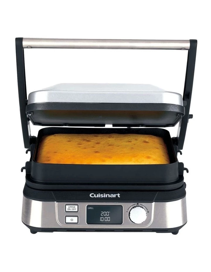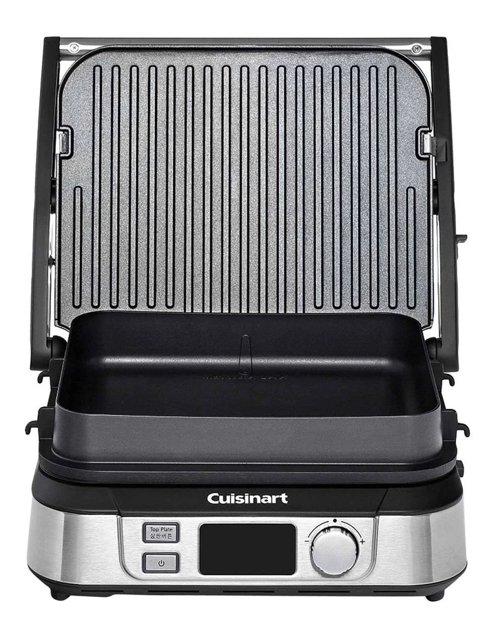 - Features: •OPENS INTO FLAT BBQ MODE •REMOVABLE REVERSIBLE PLATES •HINGED FLOAT •UNIQUE DEEP PAN ING COVER •PRECISION CONTROL •EASY TO CLEAN