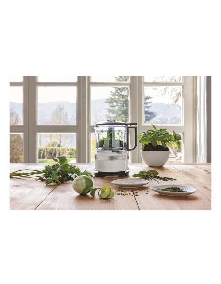 Eat healthy, get creative, and save time with the KitchenAid3.5-cup Food Chopper.Streamlined chopping, mixing, and pureeing offer endless opportunities for your daily meal prep.With a compact, lightweight design, simple in-bowl storage, and cord wrap, you can easily store your Food Chopper on the countertop or in a cabinet.