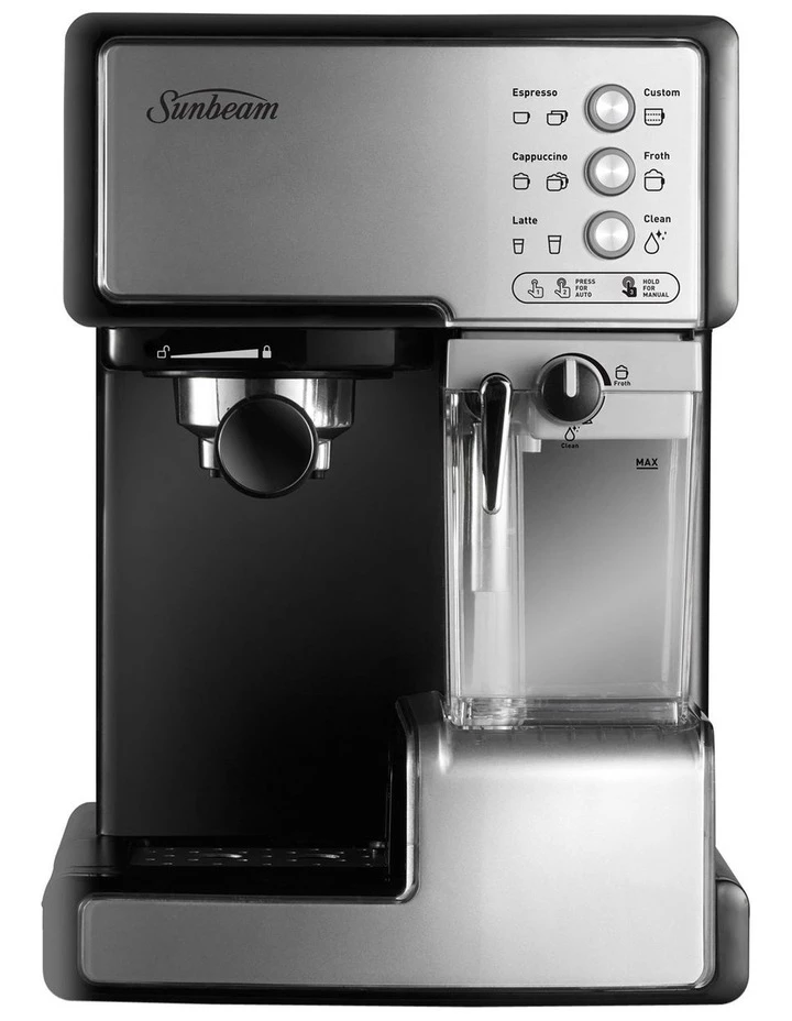 Making delicious espressos, cappuccinos andlattes at home is effortless with the one touchcontrol panel of the Sunbeam Caf Baristasemi-automatic coffee machine. Choose asingle or double shot coffee with the one ortwo cup filter baskets. Add milk just the wayyou like from the Auto Milk Frother and youhave a simply great tasting coffee, every time.