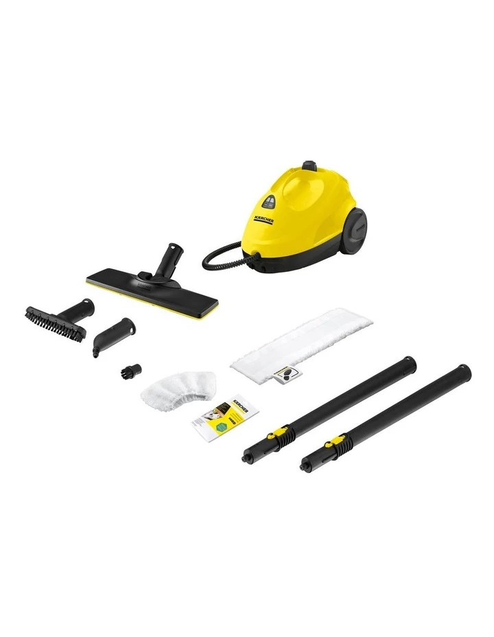 The easy and intuitive to use SC 2 EasyFix entry-level steam cleaner provides two-stage steam regulation for adapting the steam intensity to the surface and level of dirt. Practical accessory storage on the device as well as a parking position for the floor nozzle are useful details for even more convenient steam cleaning. The floor nozzle EasyFix with flexible joint guarantees excellent ergonomics and, thanks to the lamella technology, ensures perfect cleaning results. Thanks to the hook-and-loop system, the microfibre floor cloth can be quickly and easily attached to the floor nozzle and removed again without having to come into contact with dirt. The SC 2 EasyFix Karcher steam cleaner cleans entirely without chemicals and can be used anywhere. Thorough cleaning removes 99.99% of all common household bacteria from common household hard surfaces. When the various accessories are used as intended, tiles, hobs, exhaust hoods and even the smallest of gaps are hygienically cleaned. Even stubborn dirt is reliably removed.