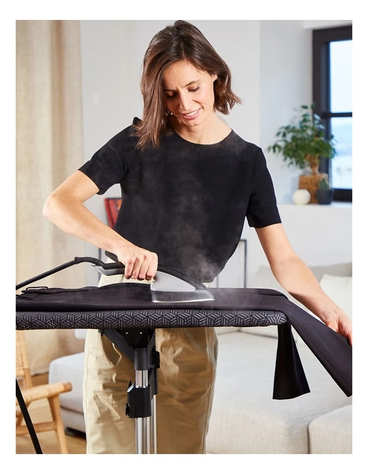 Bringing together advanced technology with the pure convenience of the Smart Board system, the Tefal IXEO Plus offers an exceptional full-size all-in-one garment care solution. Whether it’s intensive ironing or last-minute touch-ups, tackle all your ironing and steaming with total efficiency and ease thanks to innovative technology that puts cutting-edge steam power at your fingertips. Hygiene and freshness are made effortless with garment care that refreshes, sanitises and reduces odours as it steams, killing up to 99.99% of bacteria.* The built-in three-position Smart Board offers comfortable upright, horizontal and 30 ironing with enhanced ergonomics. The easy iron head boasts a feather-light user experience with optimum ergonomics, in a format that’s up to twice as light as a standard steam iron.** Ready in just 70 seconds and boasting a wide range of features, IXEO Plus is a full garment care revolution.