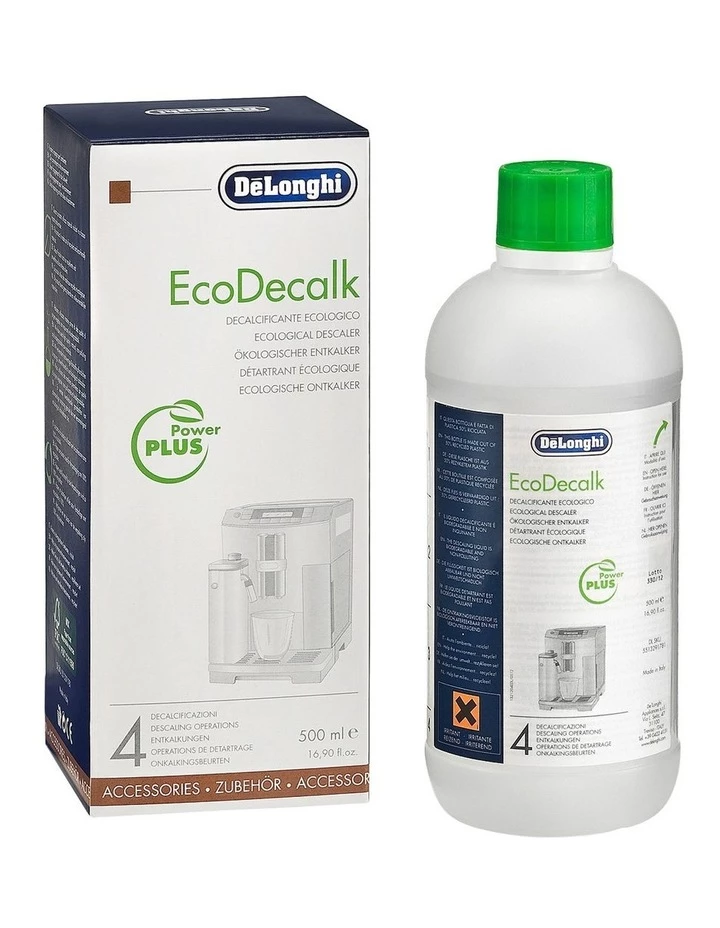 Used regularly DeLonghi EcoDecalk coffee machine descaler liquid significantly reduces the likelihood of premature breakdown from scale build-up, increases the energy efficiency and improves coffee flavour and crema.