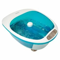 Also features dual-walled insulation for better heat retention, deep bath for full immersion, soothing infrared light spots, 6 integrated magnets for magnetic field application, 3 interchangeable pedicure attachments (exfoliator, brush and massager) that are motorised ensuring automatic rotation when pressure is applied to centre console, removable roller attachments for foot reflex zone massage, foot rest with massage rollers, splash protection, non-slip rubber feet, cord winder and more.
