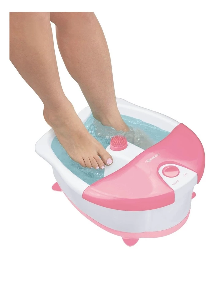- Features: Aeration jets release millions of bubbles for an invigorating massage. Massage tips to stimulate the soles of your feet. Arched pedicure massager. Maintains heat for extra comfort*. Convenient splash guard for no mess massaging