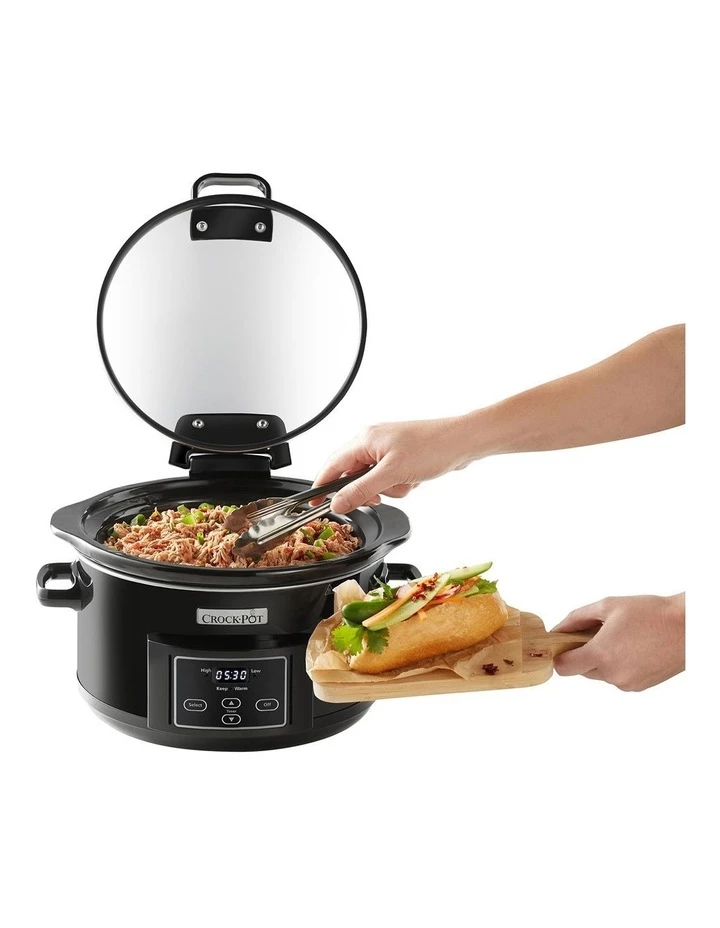The Crock-Pot Digital Hinged Lid One Pot Cooker, allows you to conveniently serve your dish straight from your crock without worrying about where to put the lid.