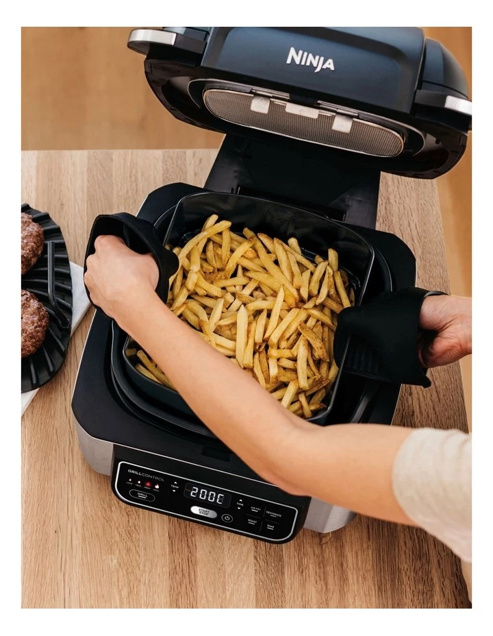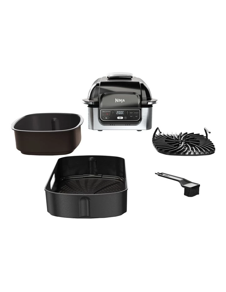 Ninja Foodi Grill. The grill that sears, sizzles, and air fry crisps. With Cyclonic Grilling Technology, super hot 260C air delivers Surround Searing, while the 260 high-density grill grate creates char-grilled marks and flavours without the smoke.