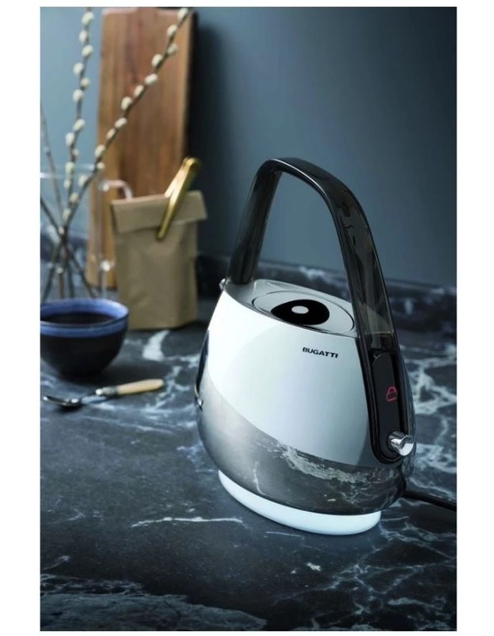 Bugattis kettles are steeped in designer flair, made for people who view appliances as an extension of their personality. The Jackie has been fashioned as a tribute to Jackie Os iconic bag design, with one difference, its a kettle. Unlike her older sister, the Jacqueline kettle, Jackie has a simple on/off functionality. So that you can have all the style of the Jacqueline, with all the simplicity of a normal kettle. With no other kettle on the market taking design cues from classic handbag shapes, the Jackie has genuine cult value.