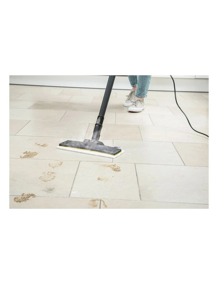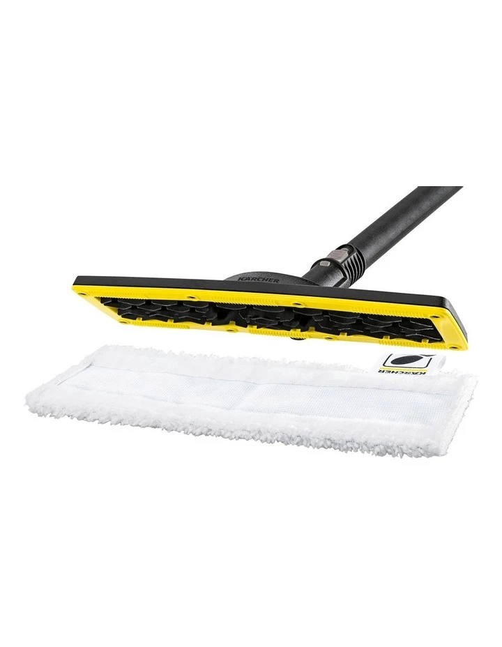 From a handheld steam cleaner to a 2-in-1 steam mop in just a few seconds: The practical floor cleaning set EasyFix for the SC 1 makes this possible. Simply use the hook-and-loop system to secure the microfibre floor cloth to the floor nozzle EasyFix and connect the nozzle to the two extension tubes (each is 0.5 m) to the SC 1 and then you can start thoroughly cleaning the hard floor. The floor cleaning set EasyFix is included in the standard scope of supply for the SC 1 EasyFix.