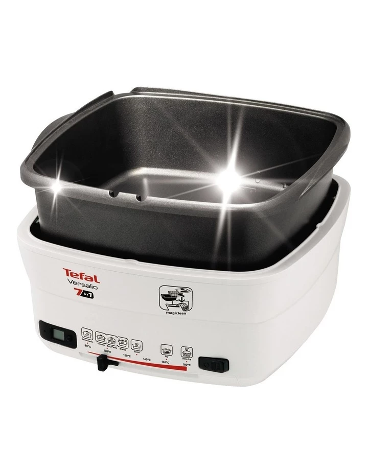 A multicooker with 7 cooking modes: fry, deep fry, simmer, braise, saut, boil/pasta and keep warm.
